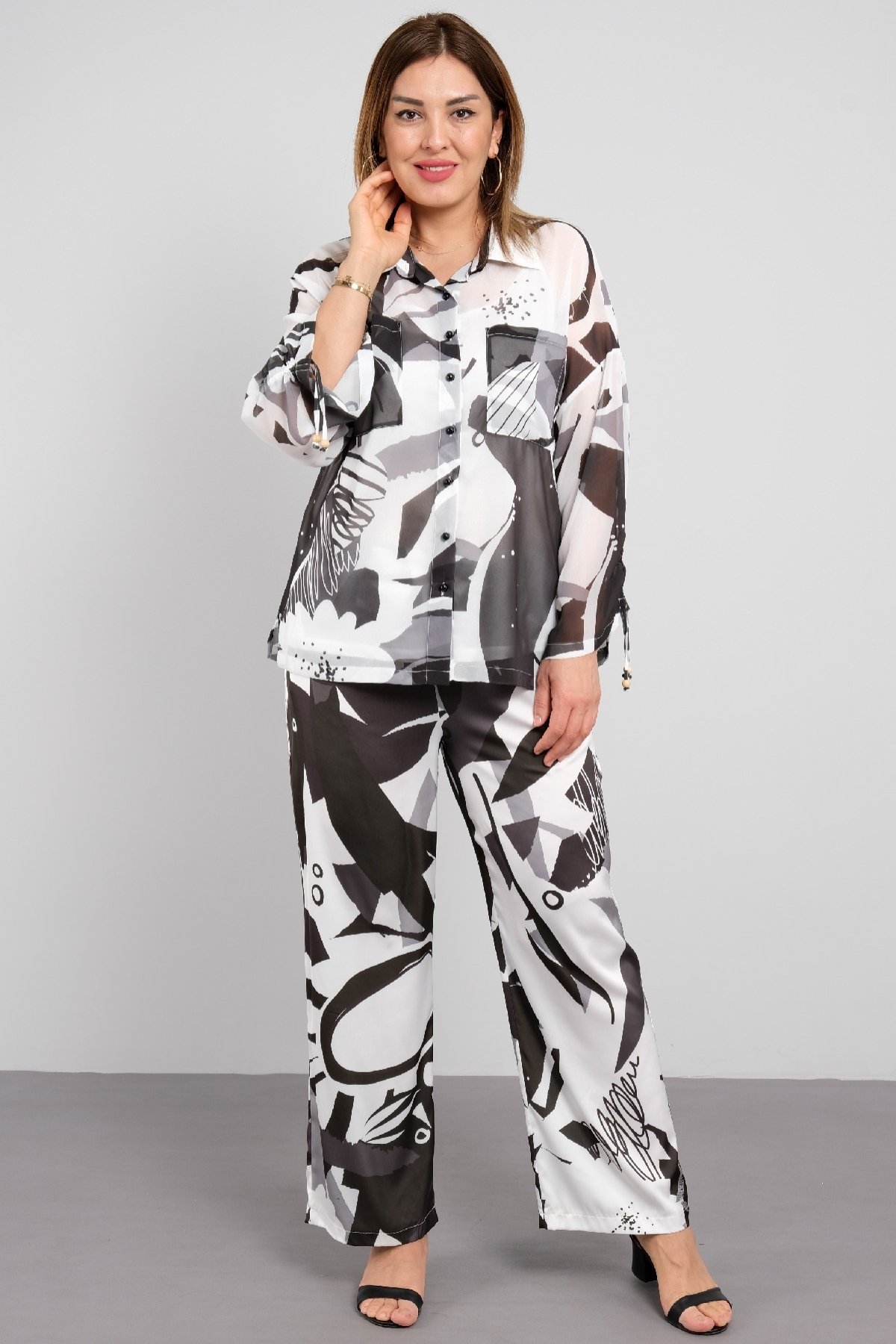 Шифоновый женский костюм с цветочным узором