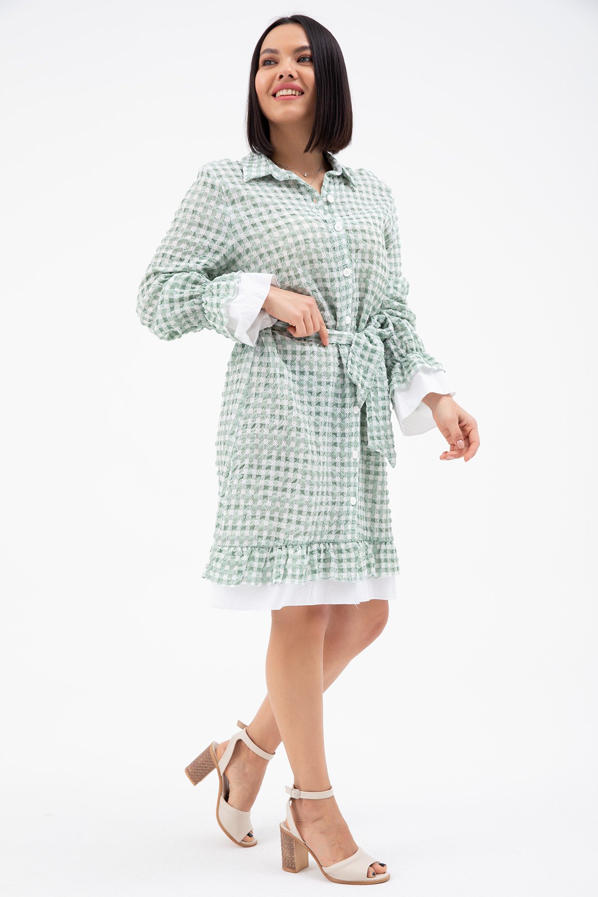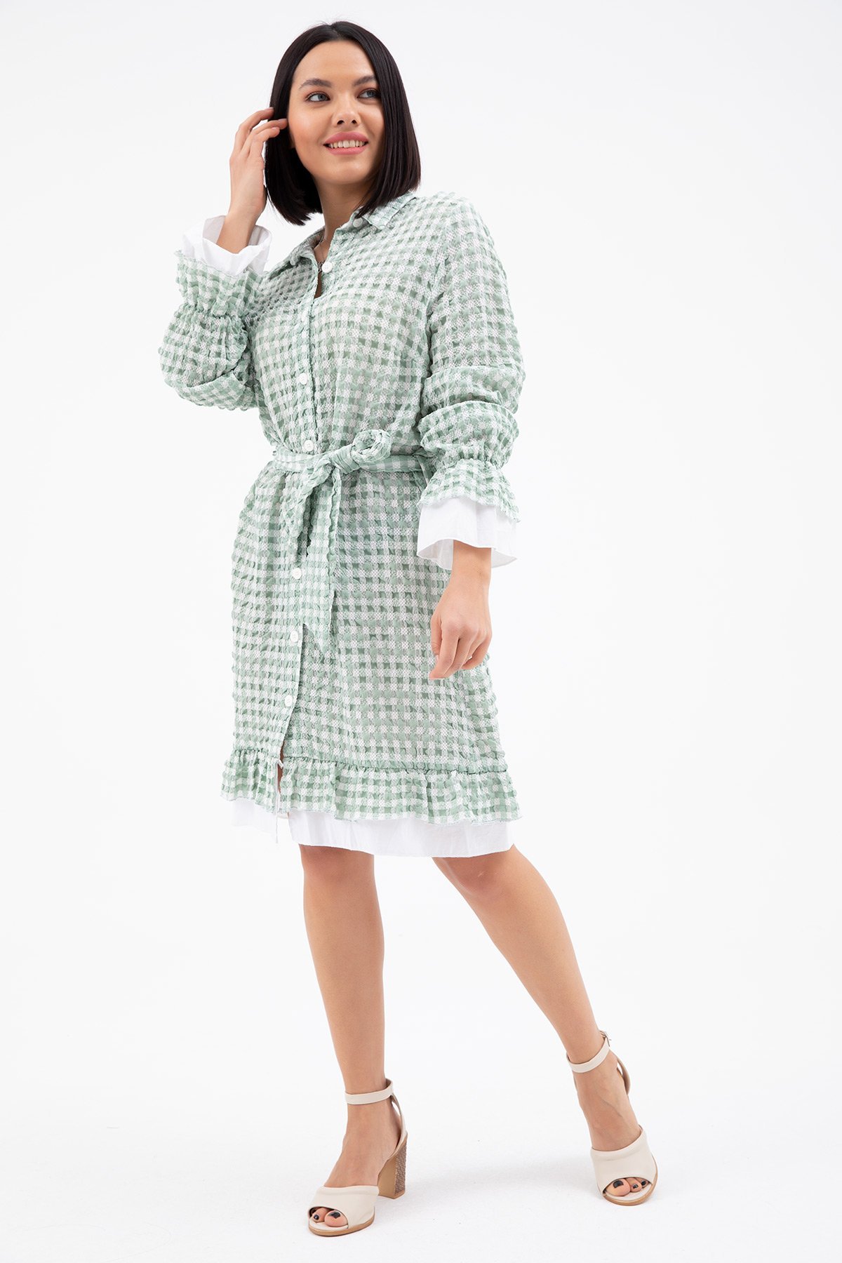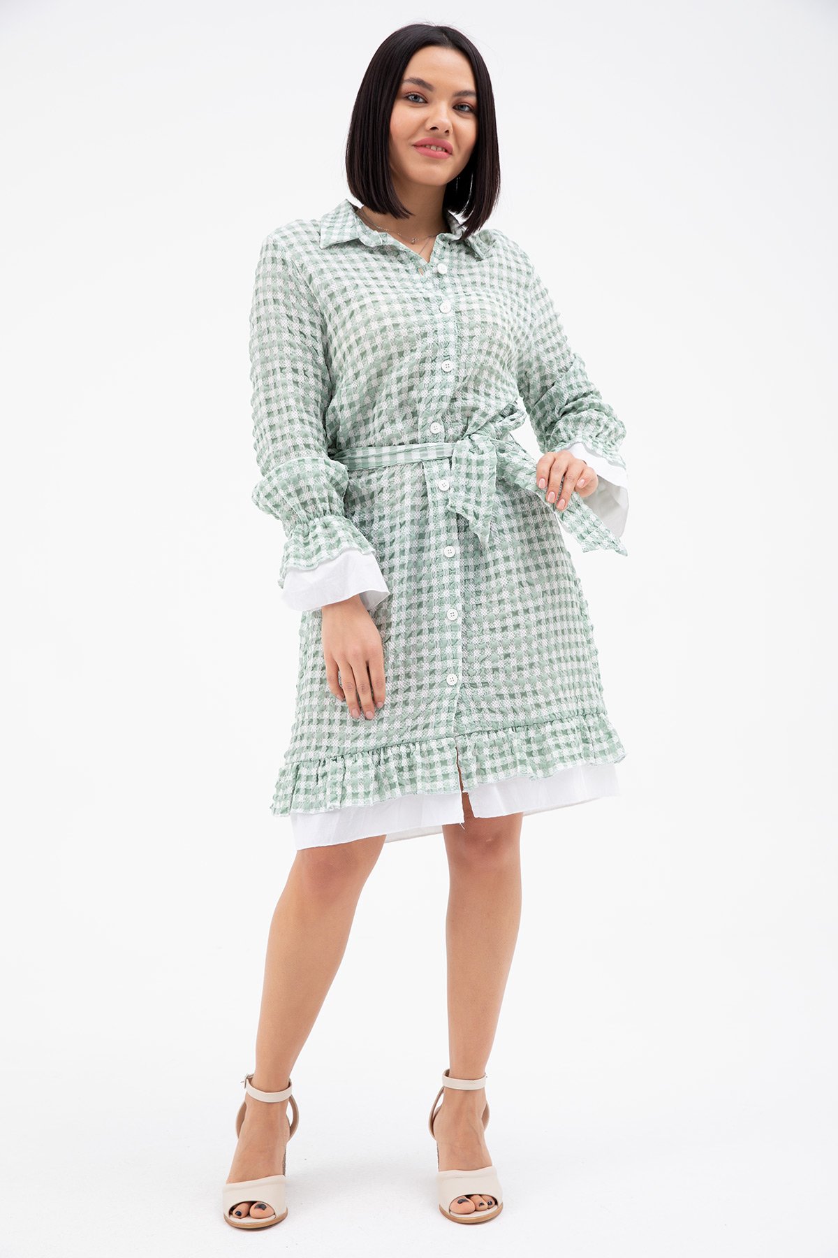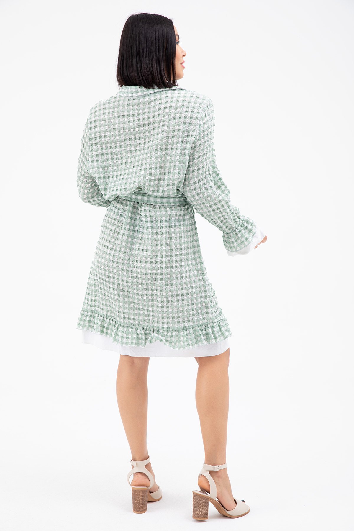 Ekose Fırfırlı Elbise